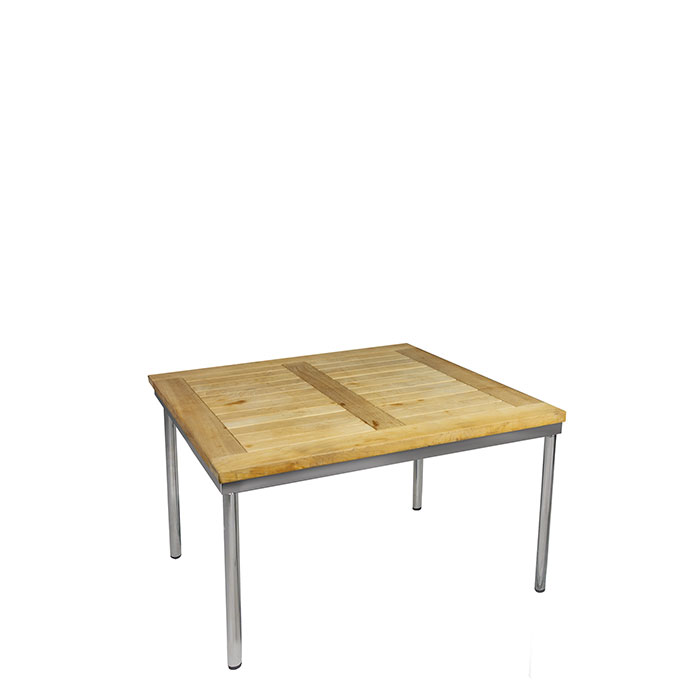 Konferenzloungetisch 80 x 80 cm mit Chromgestell und Platte aus Teakholz